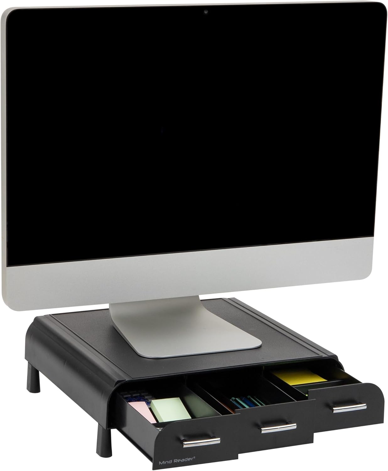Upgrade your workspace with the Mind Reader Monitor Stand, a versatile laptop riser and desktop organizer from the trusted Mind Reader Store. Designed to promote better posture and reduce neck, shoulder, and eye strain, this stand is made from durable, easy-to-clean plastic that can support monitors up to 22 lbs. Its three pull-out drawers make organizing desk essentials effortless, helping you maintain a tidy, efficient office environment. Compact yet sturdy, this all-in-one solution is perfect for anyone looking to boost productivity and comfort.